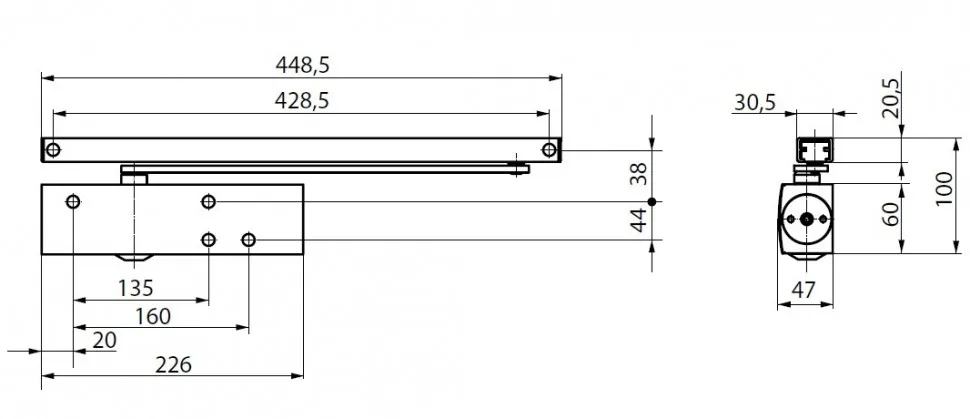 - Можно использовать для дверей с правым и левым упором без перестановки